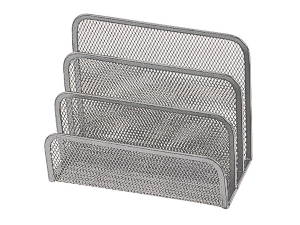 Stojan na listy s tromi priehradkami v drôtenej úprave. Rozmery (š × v × h) 170 × 135 × 83 mm. Farba strieborná.