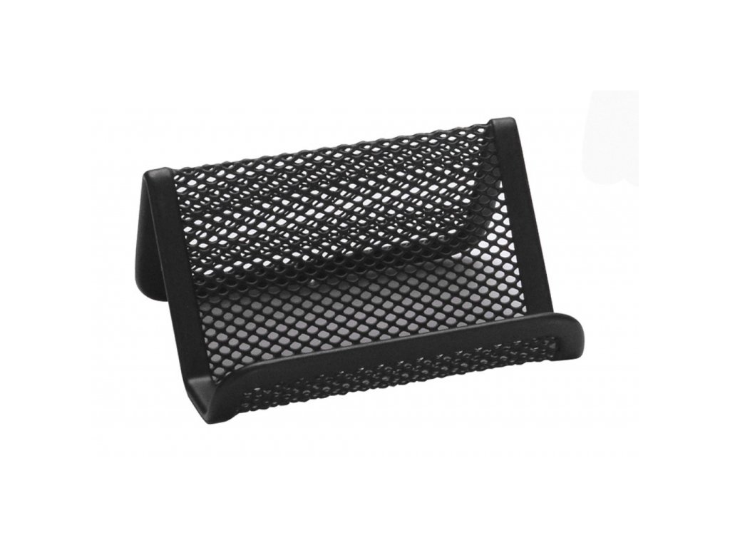 Stojan na vizitky v drôtenej úprave. Rozmery (š × v × h) 95 × 75 × 45 mm. Farba čierna.