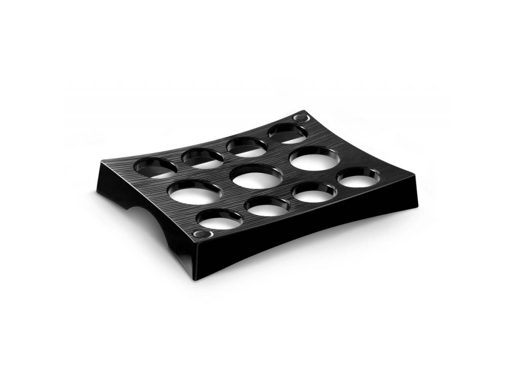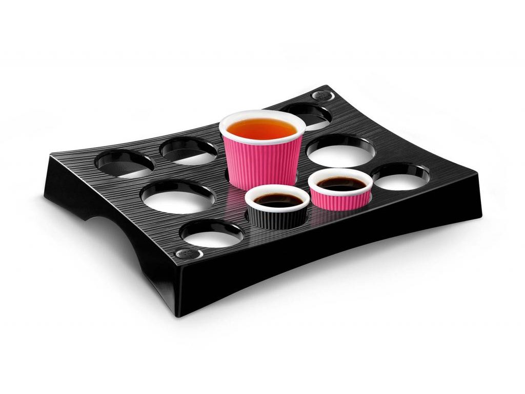 Pohodlný a efektívny držiak na prenos teplých nápojov do zasadacej miestnosti bez rizika rozliatia alebo popálenia. Pojme až 11 šálok, 3 veľké otvory na priemer šálky 65 mm a 8 menších na priemer šálky 53 mm. Navrhnutý tak, aby sa zmestil do šuplíka. Použiteľný samostatne alebo s podnosom. Farba kovová sivá.
