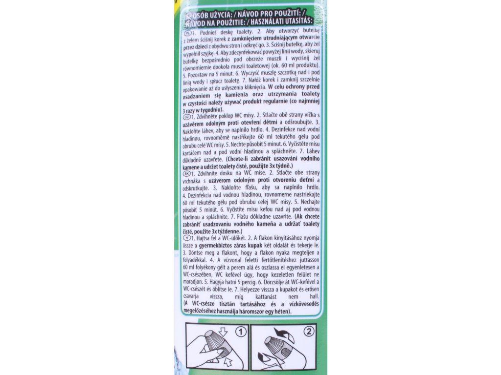 Používajte len na WC misy. Nemiešajte s bieliacimi činidlami a ani inými domácimi čistiacimi prípravkami.