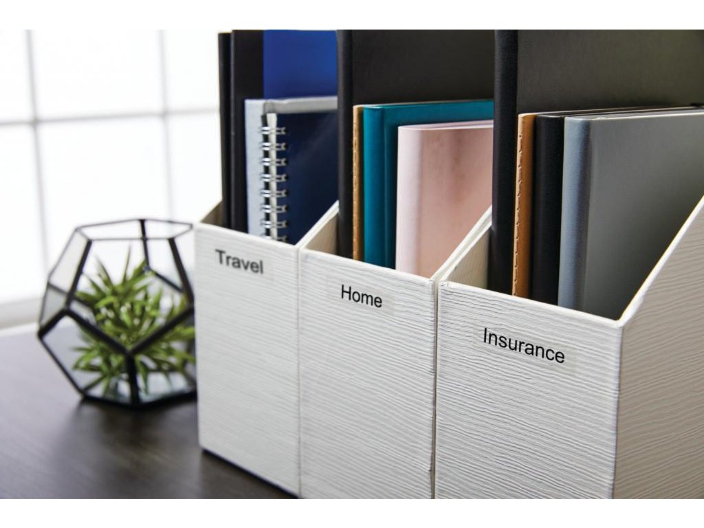 funkcia automatického vypínania. Technické parametre: 2-riadkový 13-znakový semi-grafický displej, slovenská diakritika, QWERTY klávesnica, 222 symbolov a obrázkov, 8 druhov rámčekov, 3 fonty, 7 štýlov písma,6 veľkostí písma, funkcia uloženia textu, pamäť na uloženie posledných 9 štítkov, ručný odstrih pásky, USB pripojenie. Balenie obsahuje: štítkovač LabelManager 280, Nabíjateľná batéria, USB kábel, Štartovacia kazeta na štítky D1, čierna na bielej, 12 mm x 3 m, Karta rýchleho spustenia, Nabíjací adaptér.