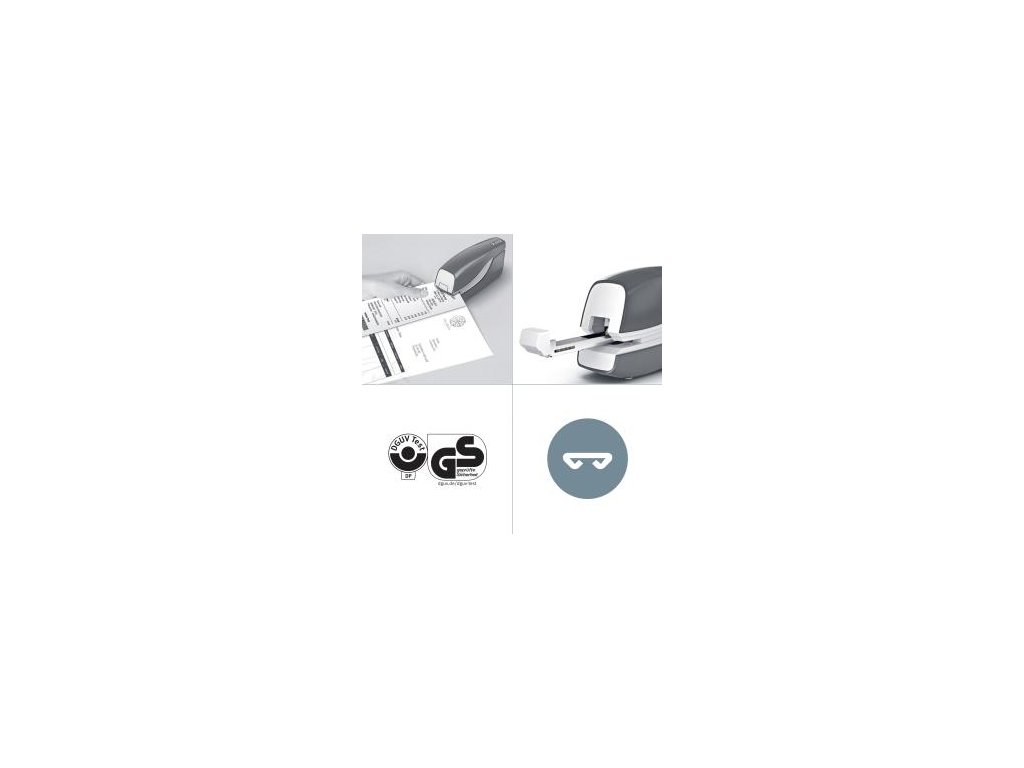 Elektrická zošívačka Leitz New NeXXt WOW. Vďaka jednoduchému ovládaniu jednou rukou je ideálna na časté používanie.