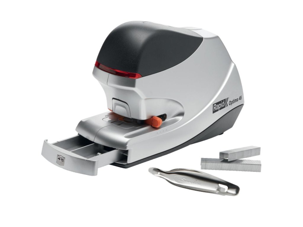 Bez námahy zošíva veľké štósy až 45 hárkov papiera. Vodidlo umožňuje presné umiestnenie drôtikov na papier. Drôtiky Optima HD70 zošívajú bez toho, aby sa zasekávali. Integrovaný LED indikátor nízkeho počtu drôtikov vás upozorní, že v zásobníku dochádzajú drôtiky. Automatická elektrická zošívačka. Napájanie sieťovým adaptérom. Drôtiky sú súčasťou balenia.Zošívanie pomocou drôtikov Optima HD70, ktoré sa nezasekávajú, súčasťou produktu je balenie 5000 drôtikov. Súčasťou je vyberač drôtikov. Napájanie adaptérom (súčasťou balenia). Farba strieborná.