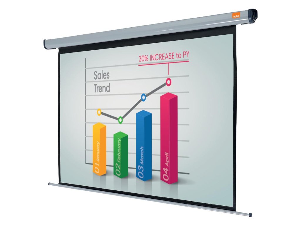 Dokonalé pre vytvorenie profesionálneho vzhľadu a pocitu z vašich prezentácií. Ideálne pre použitie v konferenčných miestnostiach, zasadacích sieňach a konferenčných halách. Použite diaľkové ovládanie,vysuňte plátno a môžete začať. Cenovo dostupná konštrukcia a jednoduchá inštalácia - zapojte ich a používajte, nie je potrebná odborná montáž. Žiarivý matne biely povrch zaručuje dokonale ostrý obraz, ktorý zreteľne uvidia všetci diváci. 1440 × 1080 mm.