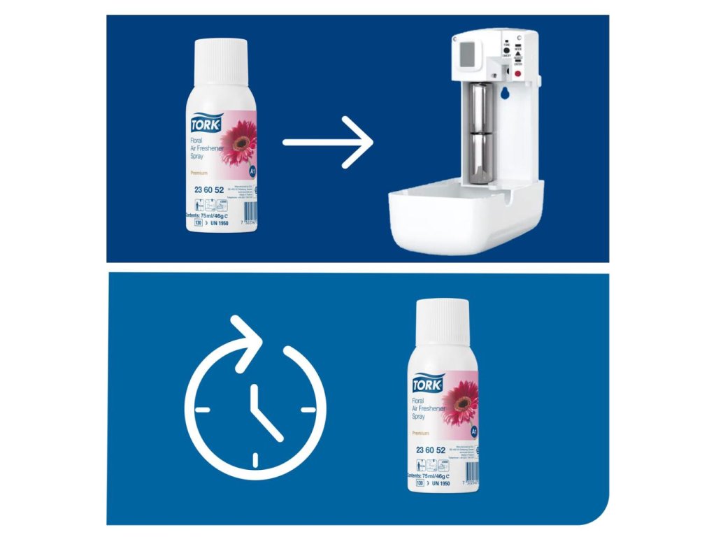 Osviežovač TORK Elevation. TORK zásobník na osviežovač vzduchu má výnimočné funkcie v každom detaile, vysoké praktické využitie a jednoducho sa udržiava. Flexibilné umiestnenie pre rôzne typy toaliet a umyvární. Náplne s rôznymi