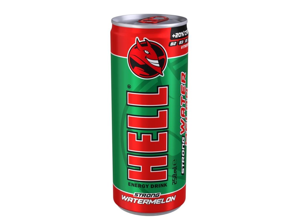 Letná chuť HELL STRONG WATERMELON s príchuťou vodného melónu, o 20 % viac kofeínu namiesto 32 mg / 100 ml, bez konzervantov, s prídavkom 5 druhov vitamínov B, v nekonečne recyklovateľnom obale na vás čaká, aby sa stal súčasťou vášho každodenného života.
