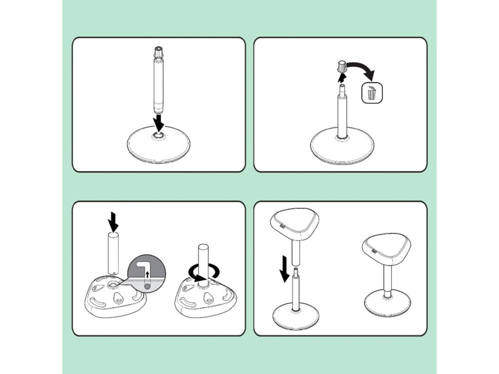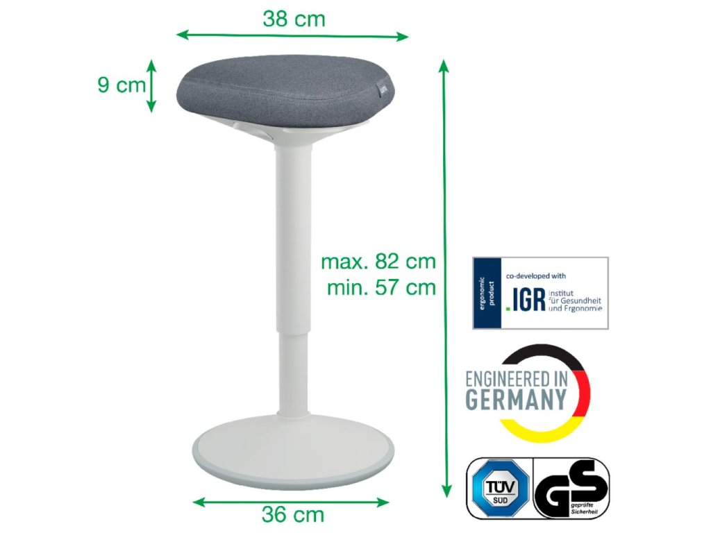 Pre perfektnú oporu v stoji pri stoloch na sedenie/st alebo pri vysokých rokovacích stoloch vďaka perfektnému výškovému nastaveniu pre každú telesnú výšku
