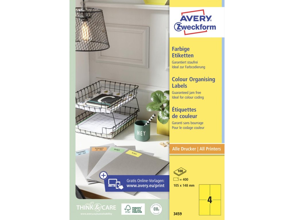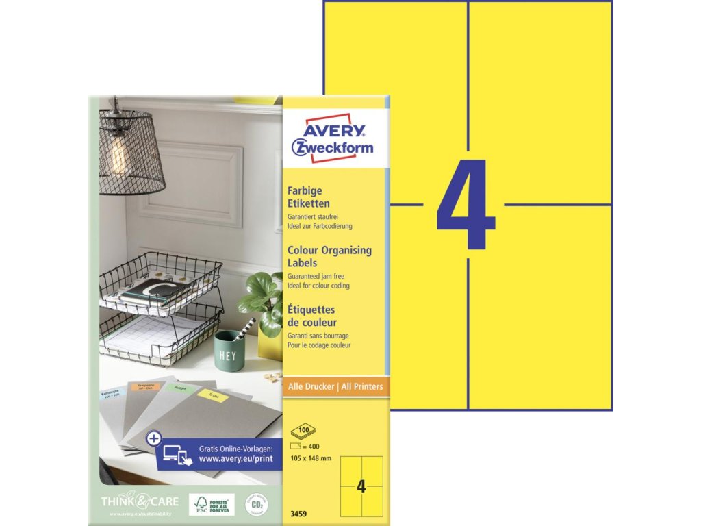 Etikety farebné 105x148mm Avery A4 100 hárkov žlté