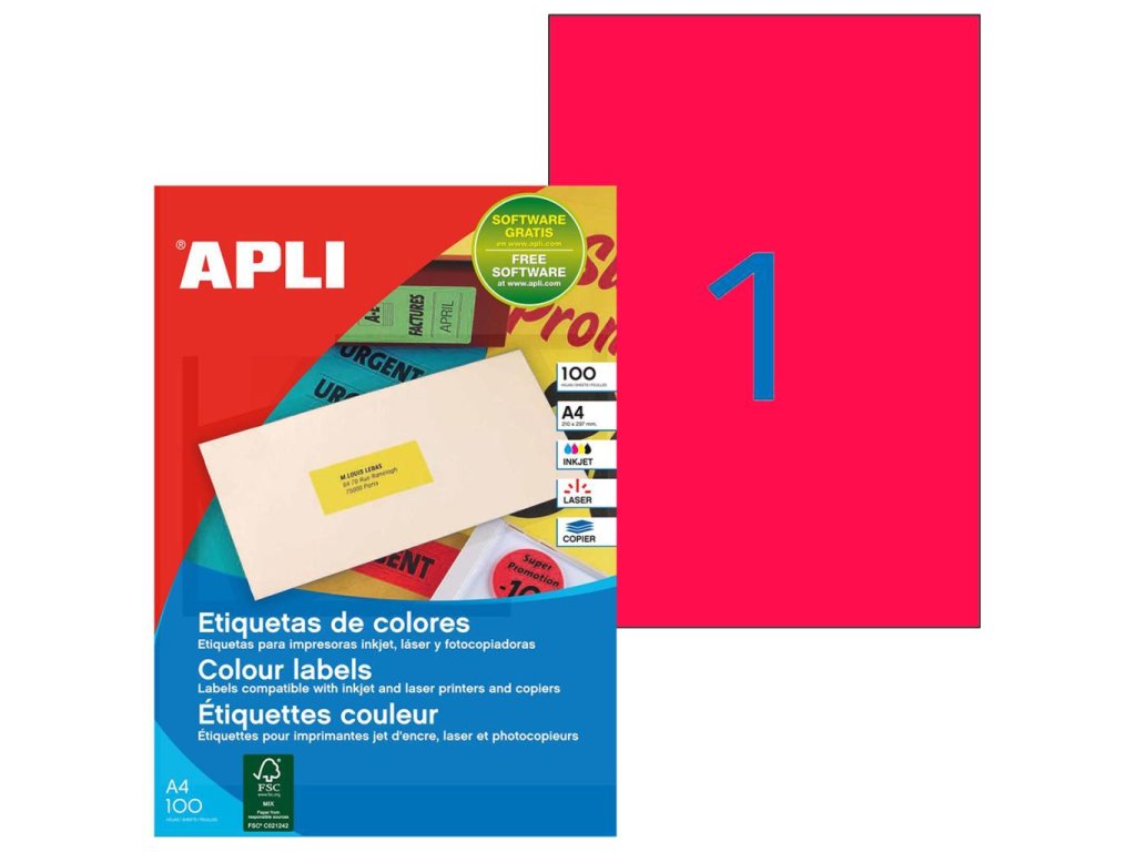 Etikety farebné 210x297mm APLI A4 100 hárkov fluo červené