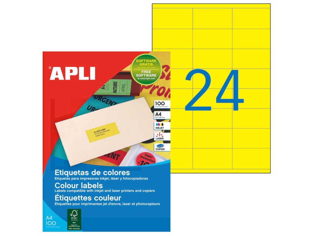 Etikety farebné 70x35mm APLI A4 100 hárkov fluo žlté
