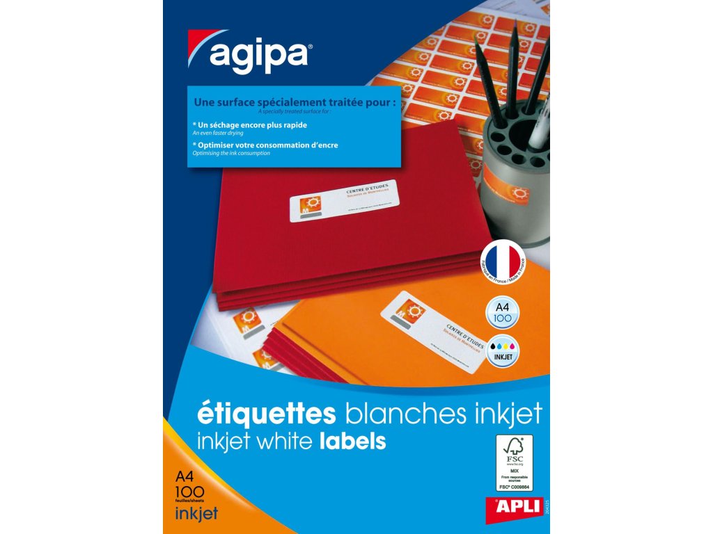 Nová kvalita papiera od Agipa zabezpečujúca ešte kvalitnejšie výsledky tlače na farebných atramentových tlačiarňach. Zaoblené rohy dodávajú etiketám profesionálny vzhľad. Okraj v hornej a spodnej časti hárku zabezpečuje efektívne využitie každej etikety na hárku. Gramáž papiera 140 g/ m2, hrúbka 145 mikrónov. Formát A4. Balenie 100 hárkov.
