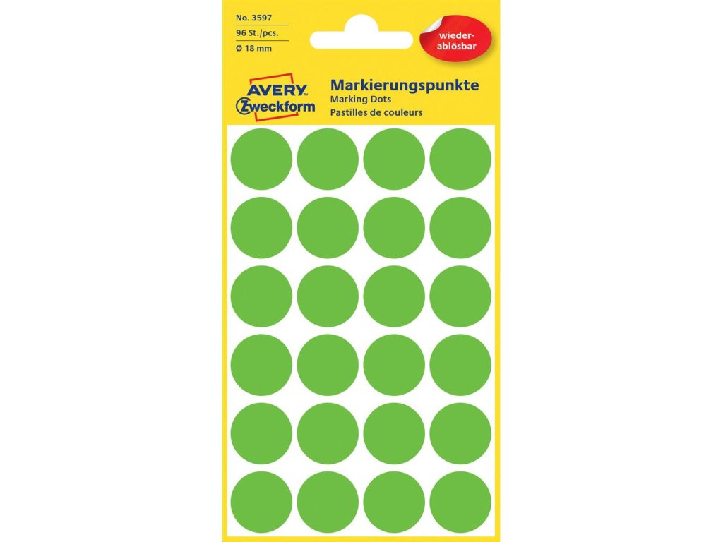 Priemer 18 mm. Počet etikiet v balení 96 kusov.