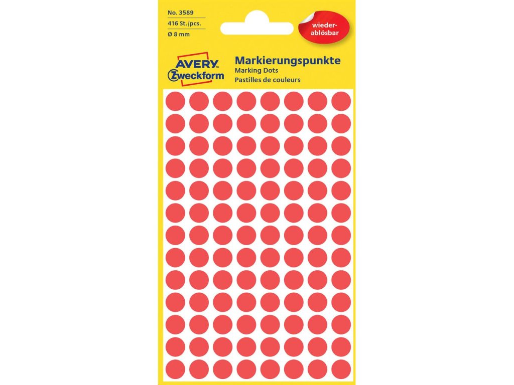 Farebné kruhové odnímateľné etikety na ručný popis. Po odlepení nezanechávajú na podklade stopy lepidla. Farba červená. Priemer 8 mm. Počet etikiet v balení 416 kusov.