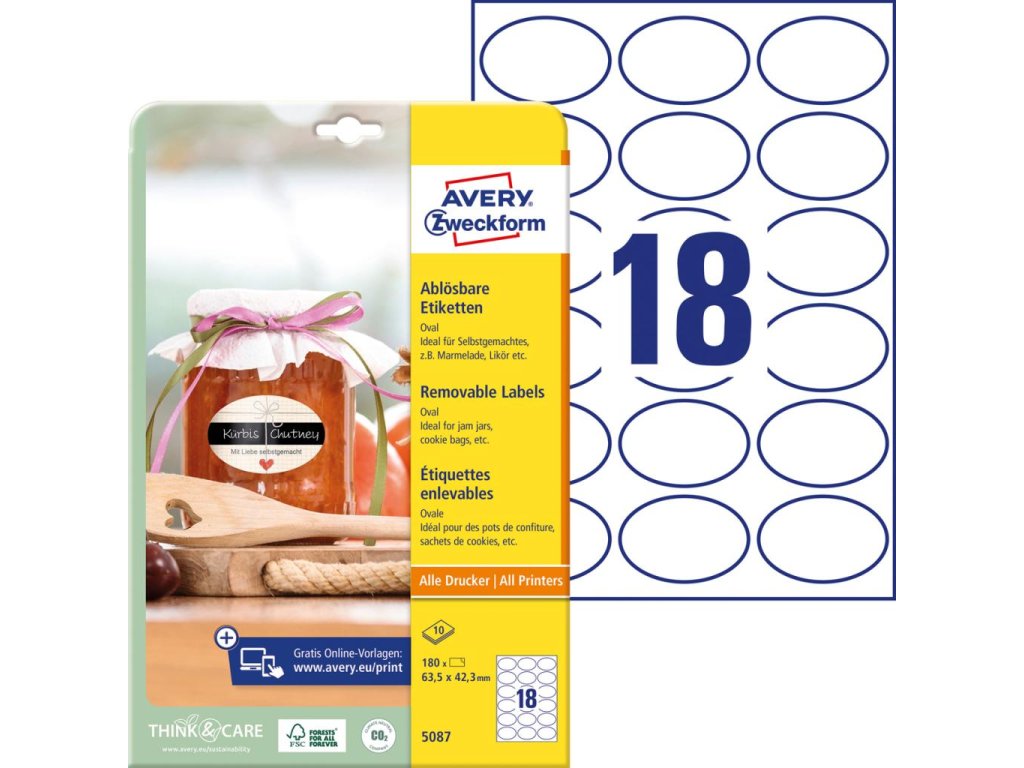 od konkurencie. Spoľahlivá priľnavosť ku sklu, fólii aj papieru. Ľahké odlepenie etikiet bez zanechania stôp po lepidle. Vhodné pre všetky druhy tlačiarní. Šablóny a softvér pre tlač etikiet zadarmo - výber z prázdnych či už navrhnutých, moderných