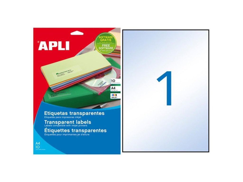 Etikety polyesterové priehľadné 210x297mm APLI A4 inkjet 10 hárkov