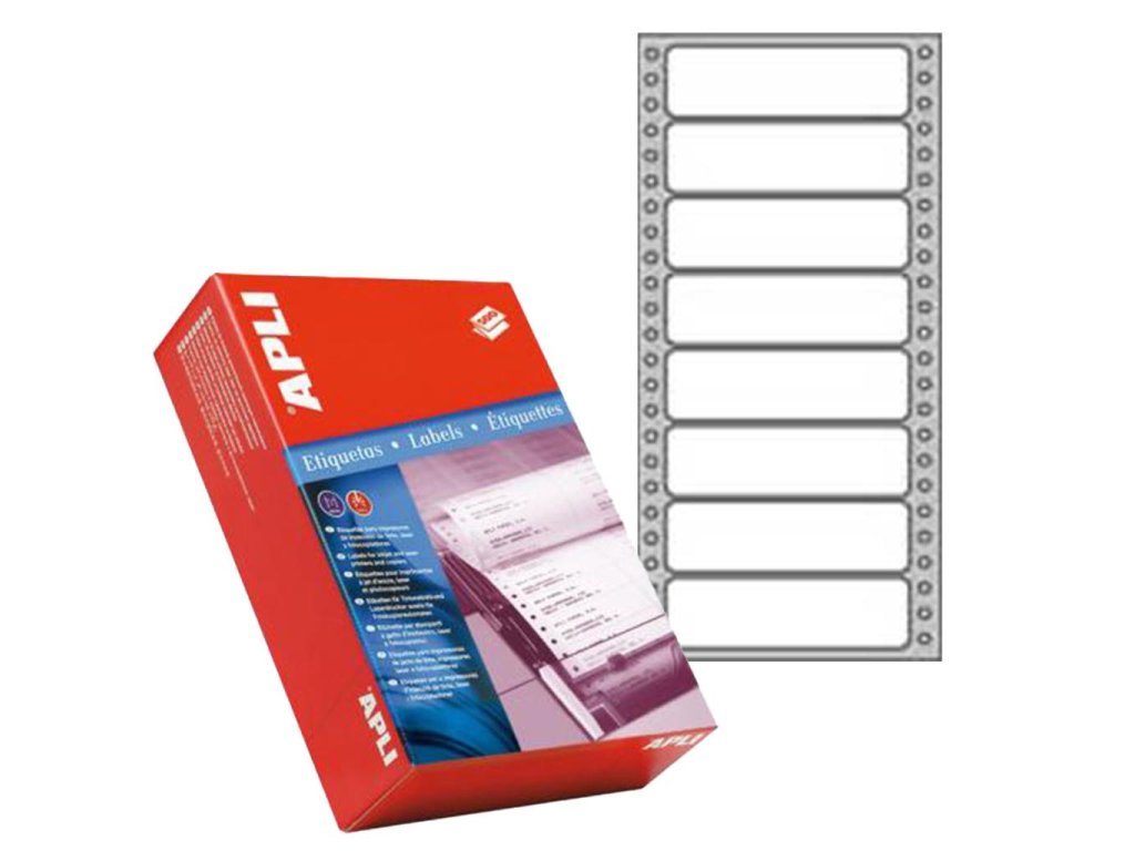 Tabelačné etikety na páse skladaných hárkov s postrannou vodiacou perforáciou, vhodné do ihličkových tlačiarní. Sú rozmiestnené v jednom rade na skladanom hárku. Farba biela. Balenie 500 hárkov.