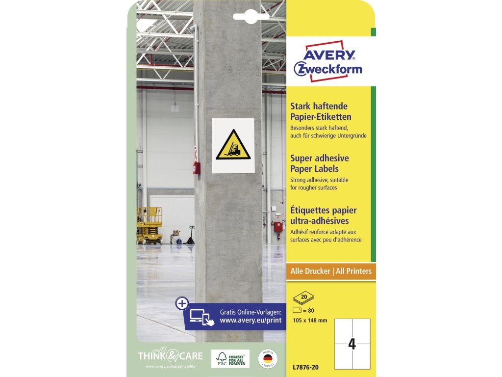 Etikety univerzálne 105x148mm Avery A4, silne lepivé 20 hárkov