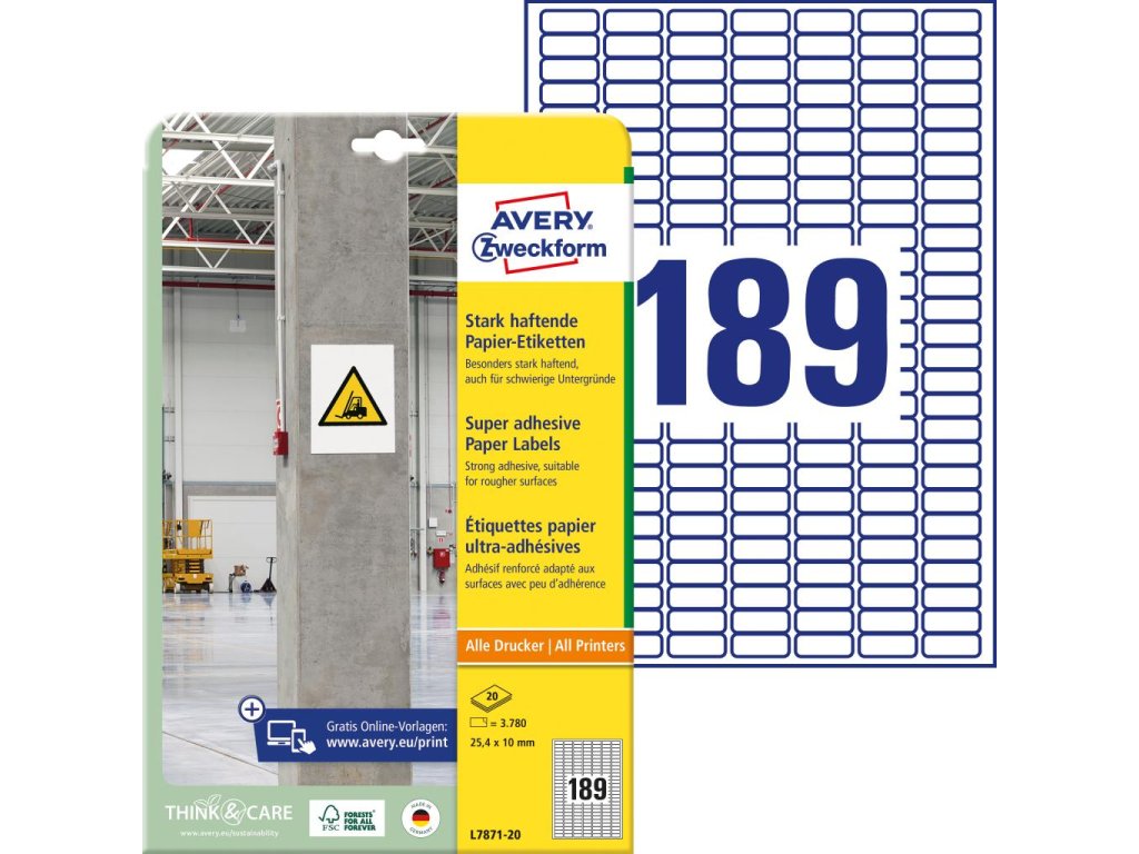 Etikety univerzálne 25,4x10mm Avery A4, silne lepivé 20 hárkov