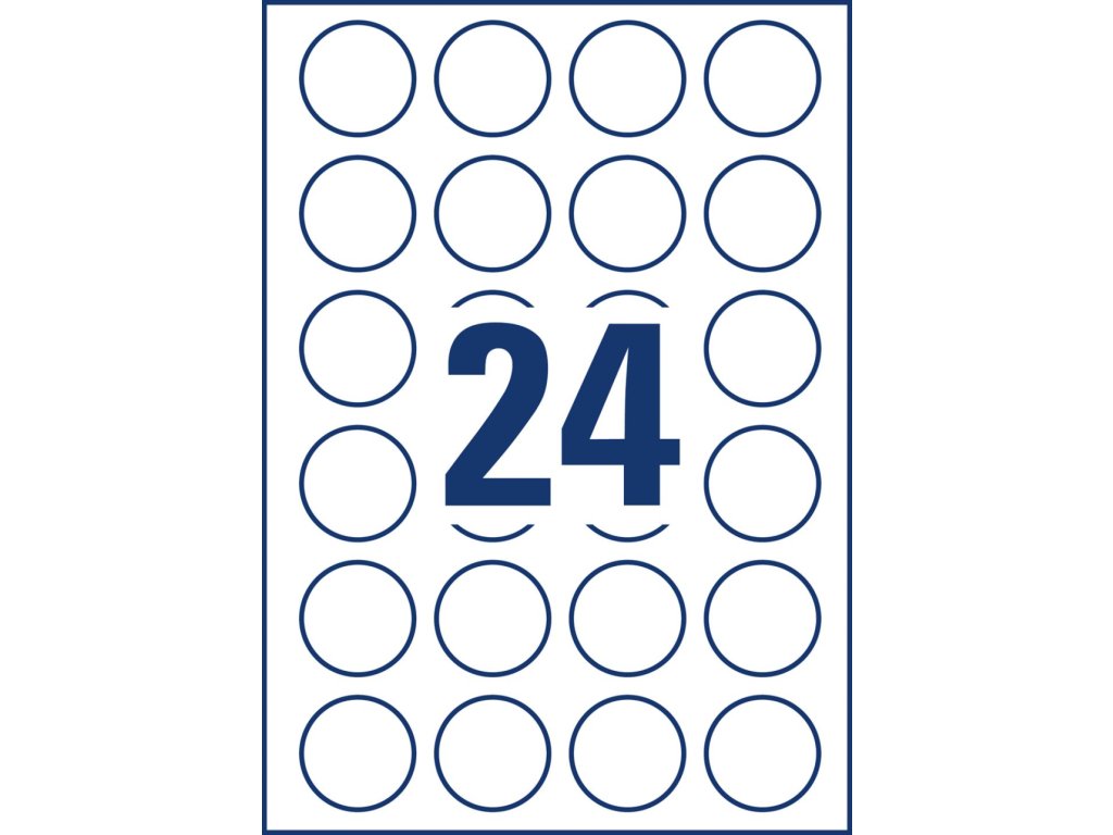 Etikety univerzálne kruhové 40mm Avery A4 10 hárkov