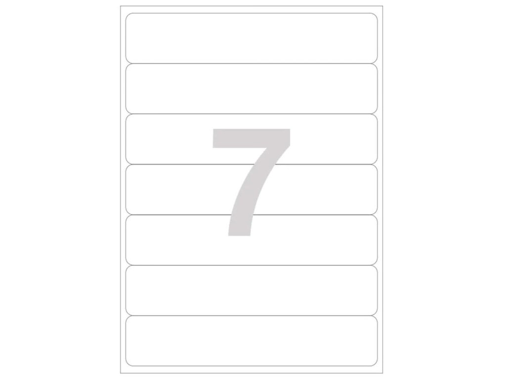 Etikety so zaoblenými rohami na tlač v atramentových a laserových tlačiarňach. Gramáž 158 g/-m2, hrúbka 154 um. Formát A4. Farba biela.