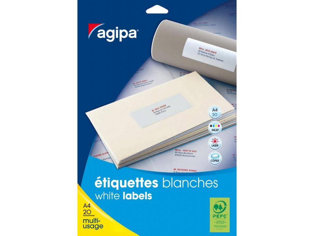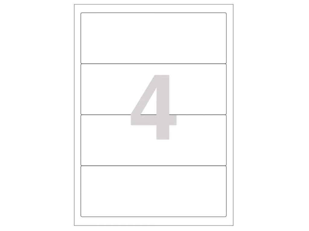 Etikety so zaoblenými rohami na tlač v atramentových a laserových tlačiarňach. Gramáž 158 g/-m2, hrúbka 154 um. Formát A4. Farba biela.