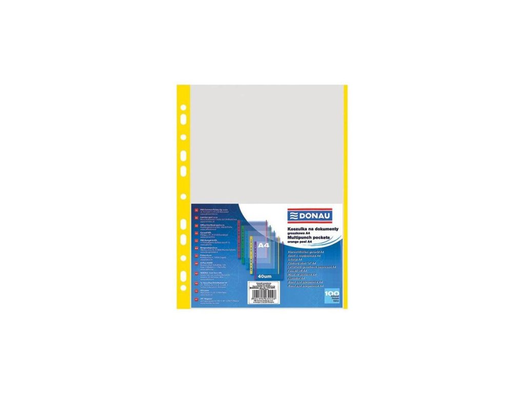Priehľadné euroobaly z polypropylénu s farebným eurodierovaním a vonkajším farebným prúžkom. Otvor zhora. Formát A4. Povrch zrnitý. 100 ks balené v sáčku.