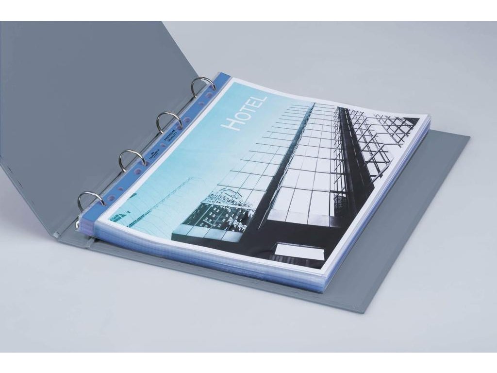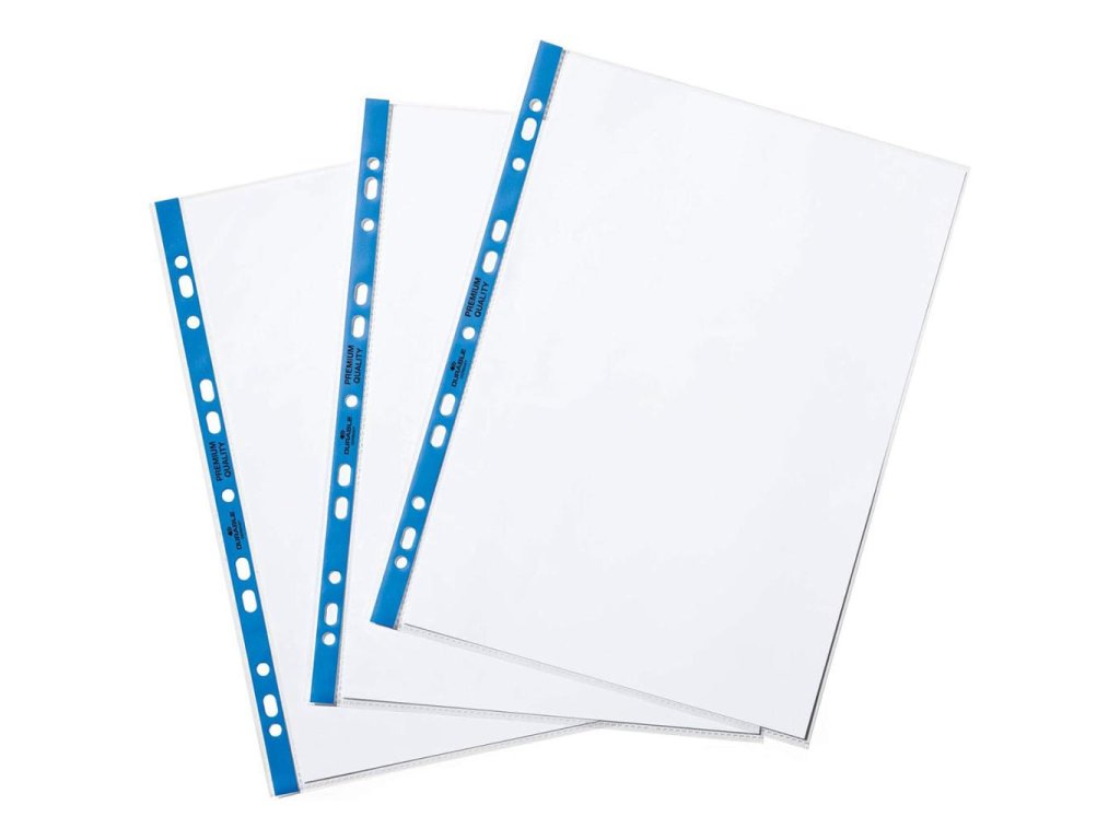 Priehľadné euroobaly z polypropylénu s farebným eurodierovaním. Otvor zhora. Formát A4. Balené v sáčku. Farba okraja modrá. Balenie 100 ks. Hrúbka 90 mic..
