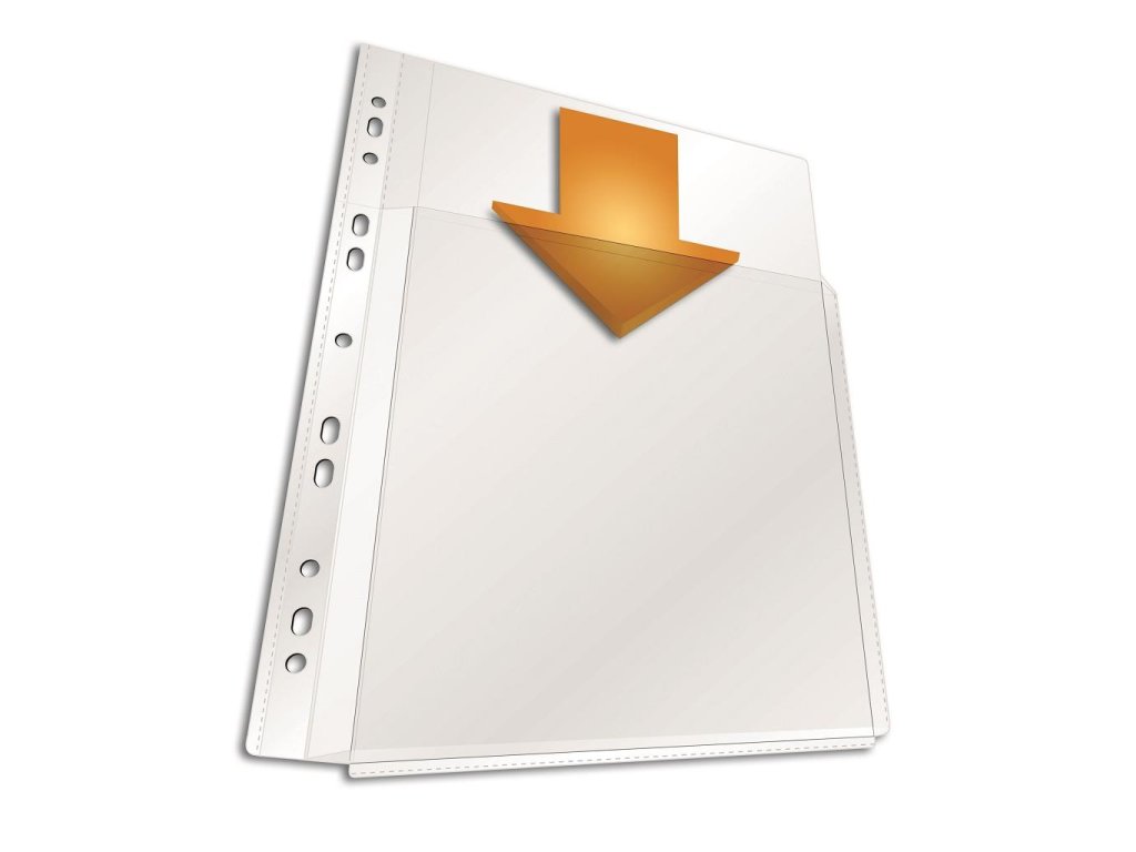 Priehľadný obal s eurodierovaním zo silnej PVC fólie. Predné vrecko s voľným chrbátom, ktorý sa prispôsobí šírke vloženého katalógu alebo počtu vložených listov. Balenie 5 ks. Hrúbka 180 mic.