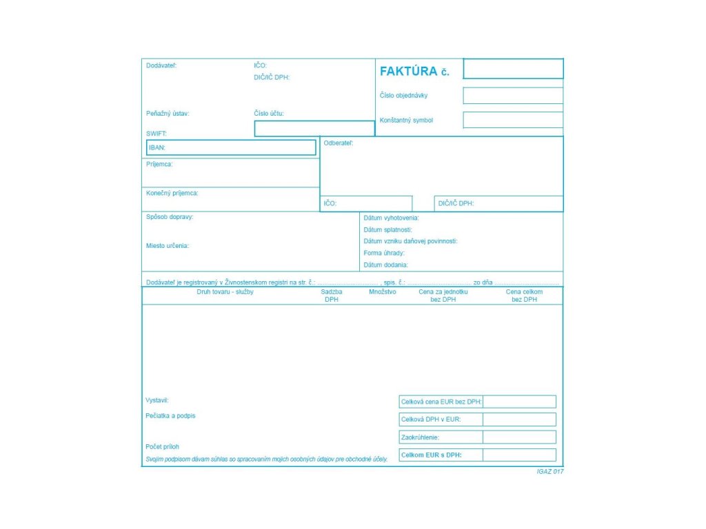 Tlačivo : Faktúra daňový doklad rozmery: 21x20 cm, v balení 100 listov.
