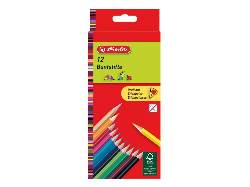 Farbičky 12 farieb, trojhranné, z lipového dreva, lakované, odolné proti zlomeniu.