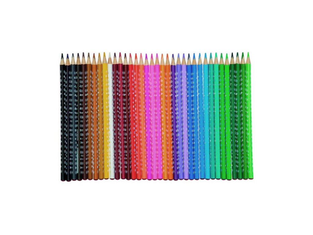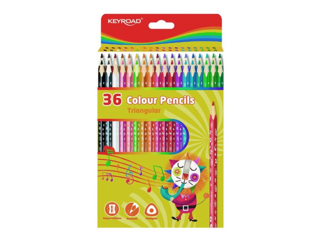 Trojuholníkové ceruzkové pastelky, ideálne na omaľovánky, mäkký grafit, ľahko sa ostria. V sade 36 farieb. Balenie: v krabici. Farba: mix farieb.