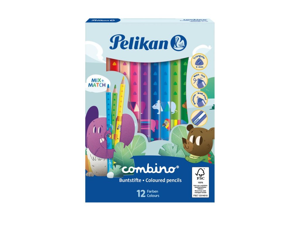 Farbičky Pelikan Combino so zvieracími motívmi silné 12ks