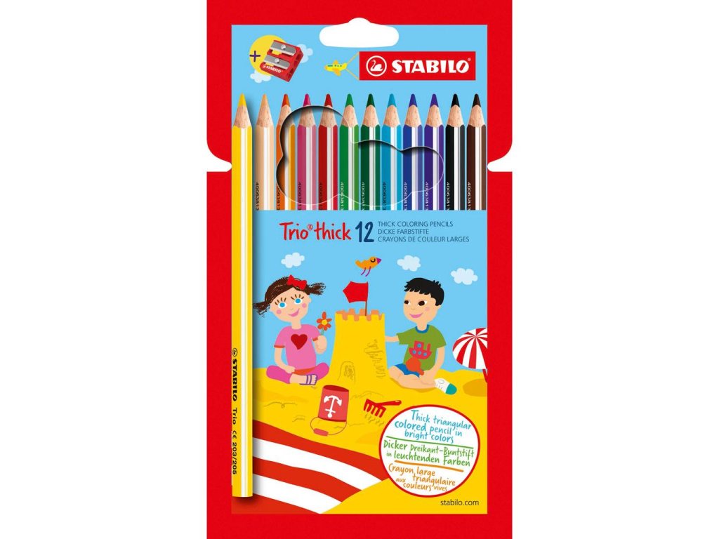 Drevená farebná ceruzka v ergonomickom trojhrannom dizajne a silnou 4,2 mm tuhou. Sada 12 ceruziek sýtych farieb s praktickým otváraním a strúhadlom. Väčšie balenie 12 sád.