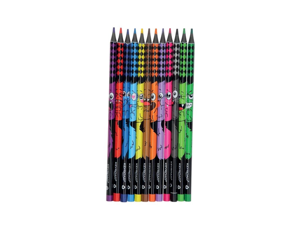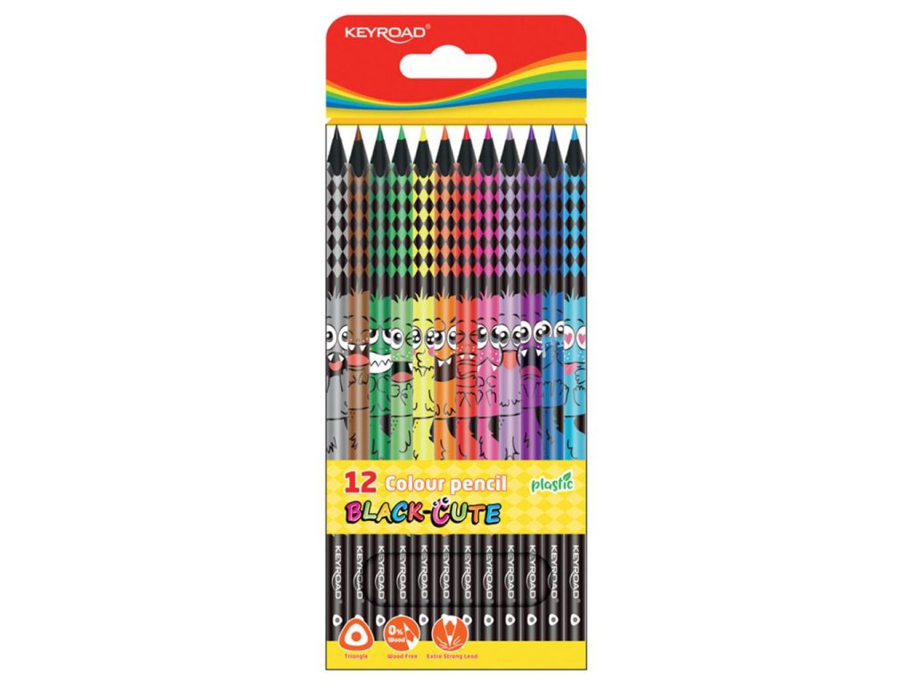 Farbičky trojhranné elastické KEYROAD čierne drevo, sada 12 ks