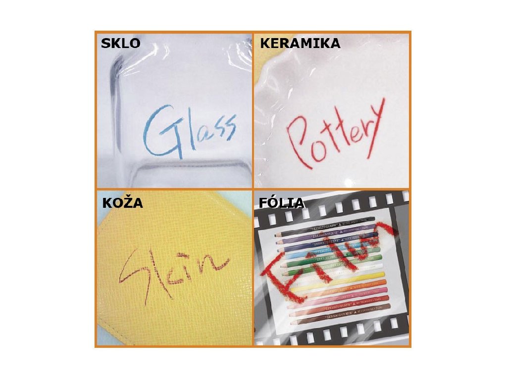 Farebná ceruzka v papierovom obale bez potreby strúhania. Špeciálne vyvinutá tuha takmer na všetky povrchy ako sklo, kovy a plasty. Tuha na olejovej báze. Dĺžka stopy 2000-4000 m, šírka stopy 1 - 4,4 mm. Balenie 12 ks.