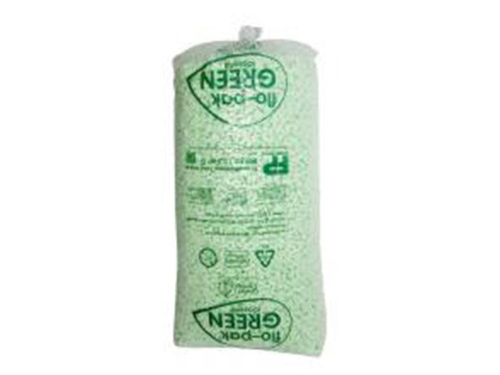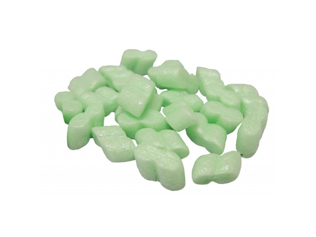 Polystyrénová drť na vypĺňanie obsahu balíkov pre ich bezpečnú dopravu. Rozmery 0,5 m3. Farba zelená.