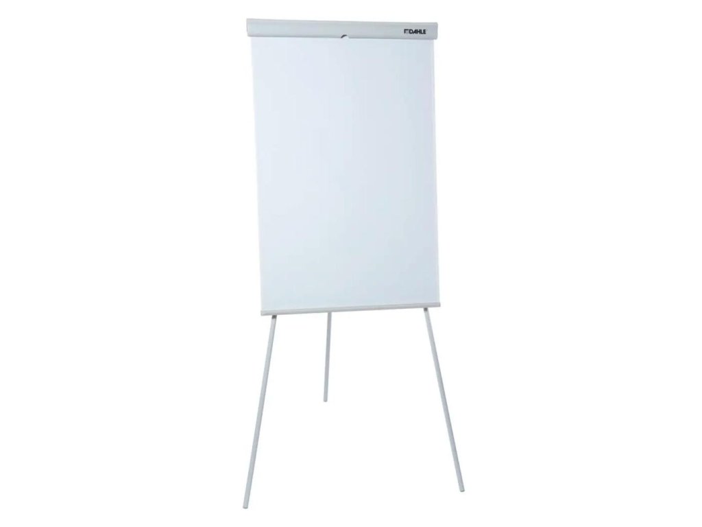 Trojnohý magnetický flipchart s nastaviteľnou výškou, vhodný na všetky dostupné papierové bloky. Sklápací držiak papierových blokov, odkladacia lišta na popisovače po celej šírke tabule. Farba svetlosivá.