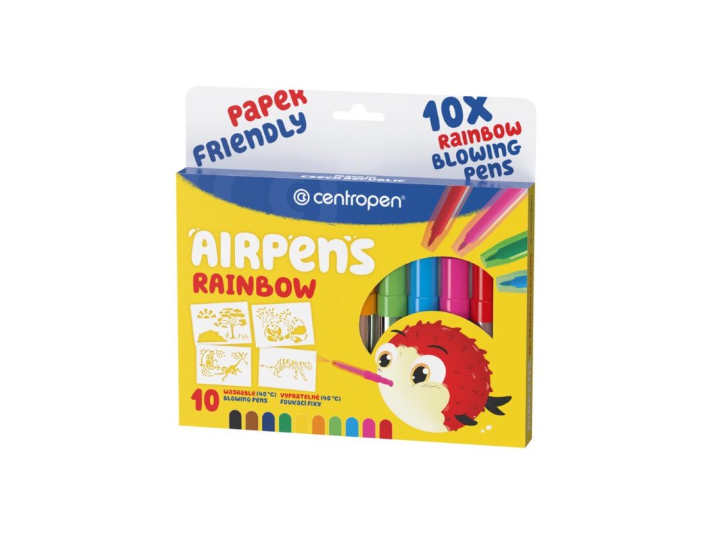 Fúkacie fixky na papier. Zdraviu neškodlivý atrament. Ľahko umývateľné a vyprateľné. 10 farebných odtieňov. 4 šablóny.
