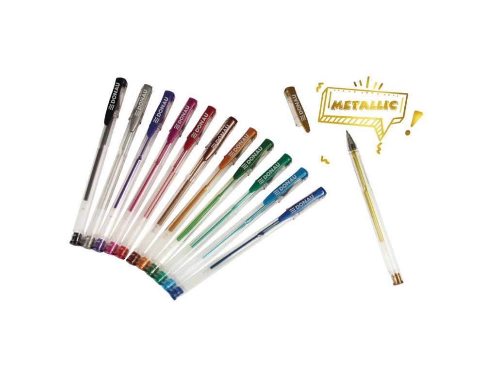 Gélové perá, 12 metalických farieb, šírka stopy 1 mm.