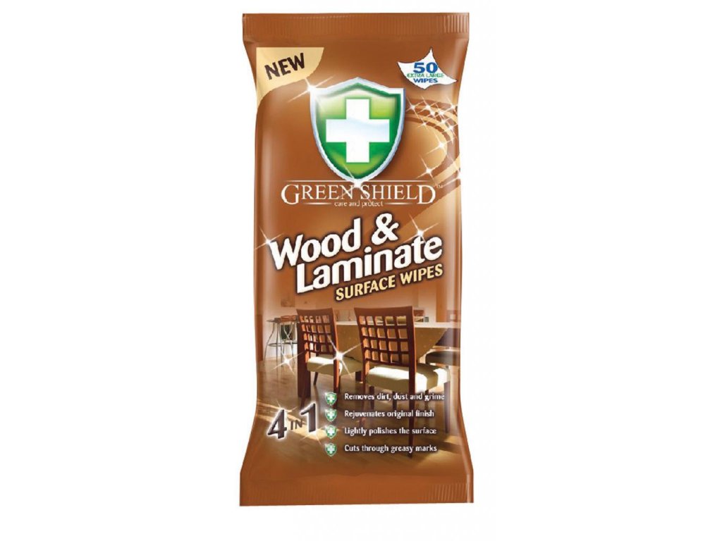 Green Shield vlhčené utierky na drevo a lamináty odstraňujú nečistoty, prach a mastnotu. Leštia povrch a obnovujú jeho štruktúru.