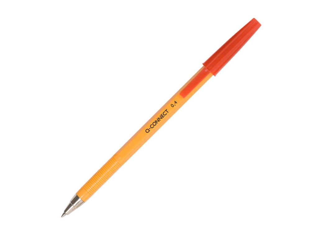 Jednorazové guľôčkové pero s oranžovým plastovým telom. Guľôčka 0,7 mm, šírka stopy 0,3 mm. Väčšie balenie 20 ks v jednej farbe. Farba náplne červená.