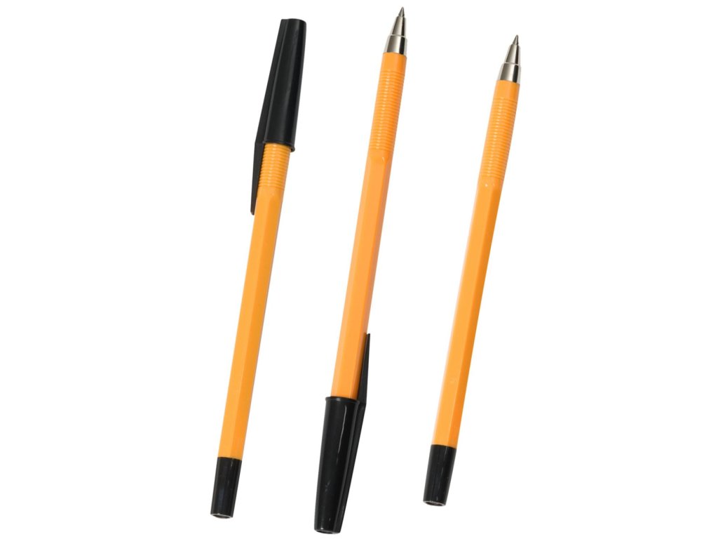 Jednorazové guľôčkové pero s oranžovým plastovým telom. Guľôčka 0,7 mm, šírka stopy 0,3 mm. Väčšie balenie 20 ks v jednej farbe. Farba náplne čierna.
