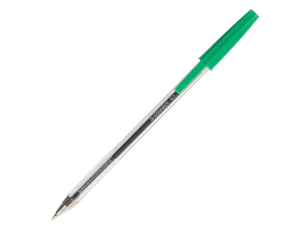 Jednorazové guľôčkové pero s priehľadným telom a viditeľnou farbou atramentu. Guľôčka 1 mm, širka stopy 0,7 mm. Väčšie balenie 20 ks v jednej farbe. Farba náplne zelená.