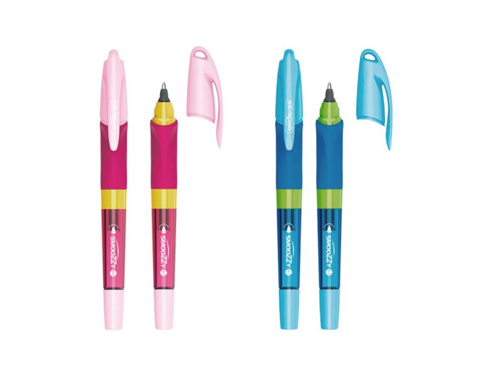 Guľôčkové pero KEYROAD Smoozzy Writer, Ideálne na učenie písania, na použitie v škole aj doma. Ergonomický gumový profil rukoväte, vhodné pre pravákov aj ľavákov. Špička z vysoko kvalitnej nehrdzavejúcej ocele. Hrúbka čiary na písanie: 0,7 mm. Zdarma 2 náplne, s umývateľným atramentom, modrá farba. Balenie: blister. Farba: mix farieb.