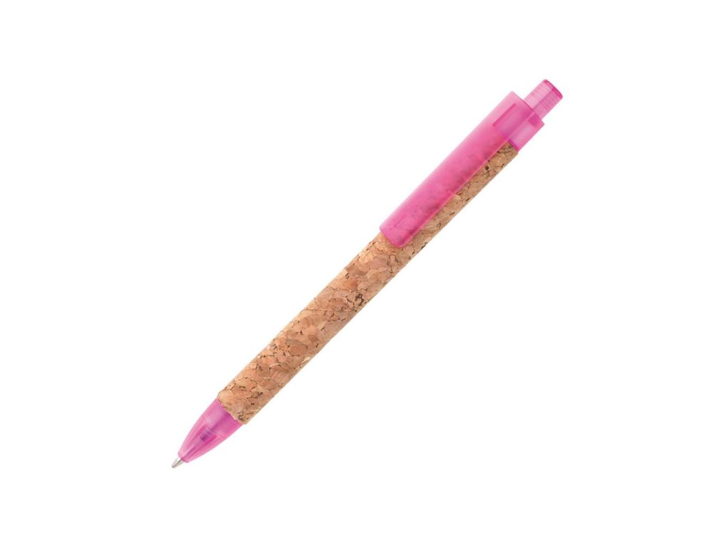 Guľôčkové pero KORK s povrchom z korku, zvyšok tela je z plastu. Modrá náplň X-20. Farba ružová.
