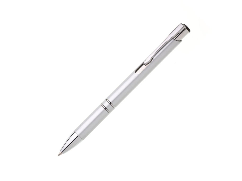Plastové guľôčkové pero OIRA s kovovými doplnkami. Modrá náplň veľkoobjemová. Farba strieborná.