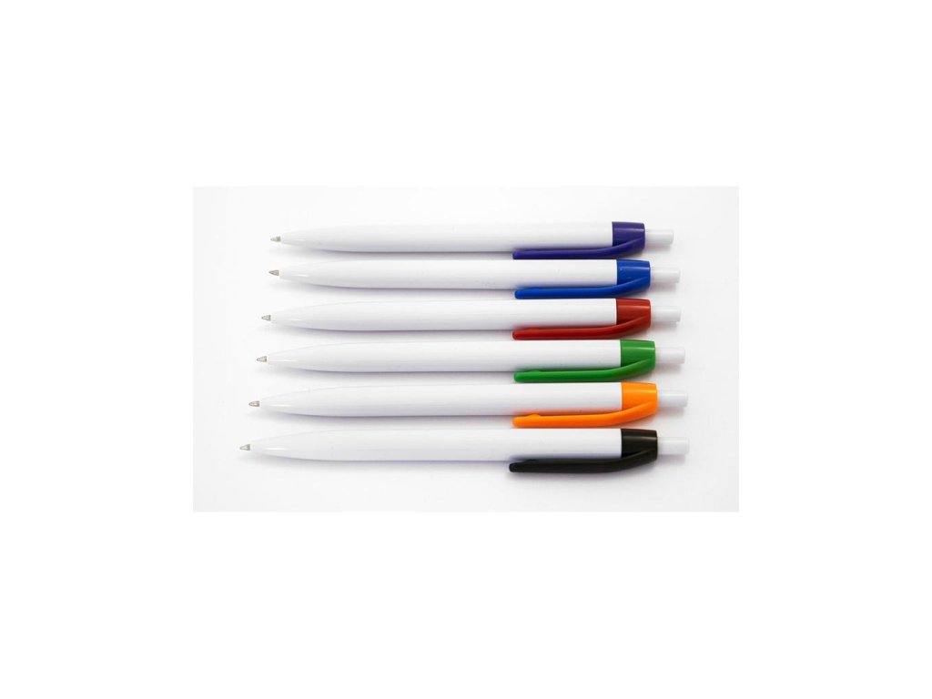 Plastové pero, biele s farebným doplnkom 0,7 mm.