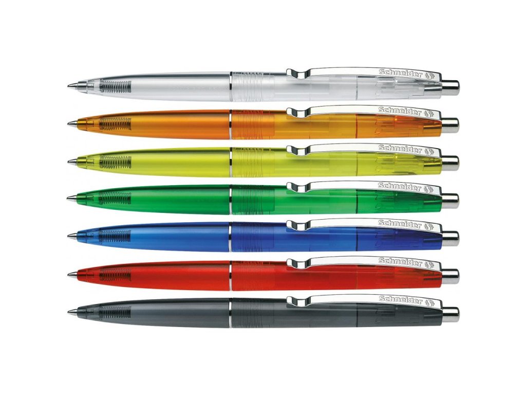 Guľôčkové pero v pestrých transparentných farbách s kovovým klipom a náplňou hrúbky M. Obľúbené balenie v mixe farieb obsahuje 20 pier v bielej, žltej, zelenej, modrej, červenej a oranžovej farbe s modrou náplňou. Doporučené náplne na výmenu: Slider 755, Express 775, Express 735.