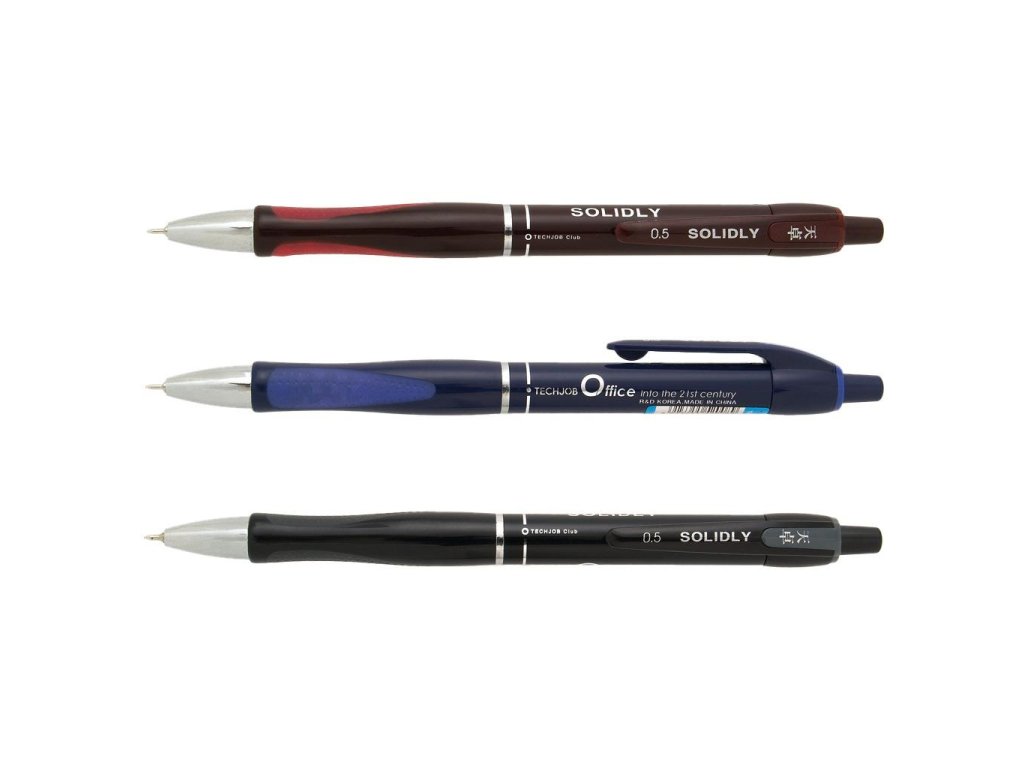 Guľôčkové plastové pero SOLIDLY s ihlovým hrotom pre extra jemné písanie s modrou náplňou. Balenie 12 ks, mix farieb (čierna, modrá, bordová), väčšie balenie 1728 ks.