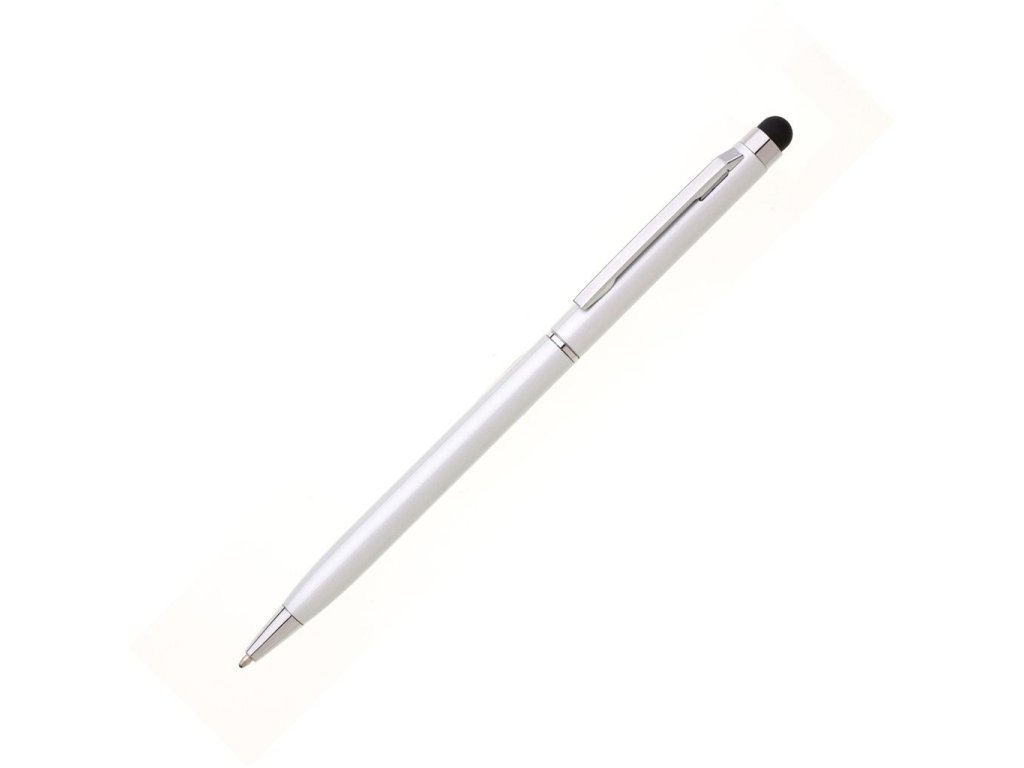 Tenké kovové guľôčkové pero s otočným mechanizmom a hrotom pre ovládanie dotykovej obrazovky. Strieborné chrómové doplnky, modrá náplň cross. Materiál hliník.
